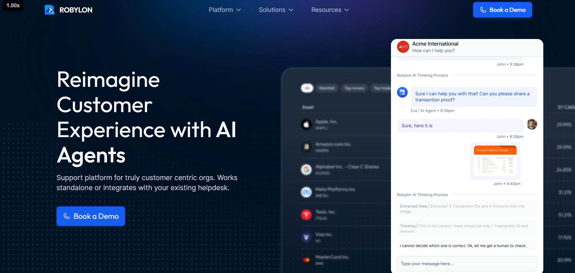 Robylon AI is a powerful agentic AI platform designed to streamline customer support and business operations. It automates over 90% of queries and workflows across channels like chat, email, voice, and ticketing with 99% accuracy from day one. Built for fast deployment and seamless integration, Robylon eliminates the need for an internal AI team. Its transparent pay-per-resolution model helps businesses cut support costs by over 30%, while human-in-the-loop oversight ensures reliability and compliance. Whether for support, onboarding, or internal operations, Robylon enhances team productivity and delivers a superior, scalable user experience across departments.