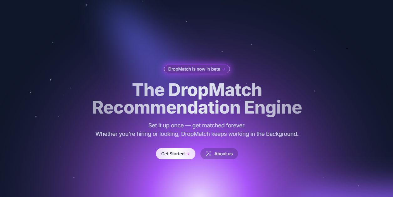 What is Dropmatch? Dropmatch is a “set-it-and-forget-it” AI job matching platform for people who are tired of endless job searching—or for companies that want to cut out all the manual work in hiring. ■ The Big Idea: Let AI Work While You Wait Register Once, Then Let It Run Job seekers just fill out their profile and preferences—no need to keep checking listings or sending endless applications. Dropmatch’s AI automatically finds and recommends companies that are a great fit. Companies can post their jobs and company info, and then simply wait as the AI matches and suggests the best-fit candidates without constant manual screening. Automatic Matchmaking & Notifications If there’s a promising match, the AI will let you know. No need to spend hours searching or applying—the right opportunities come to you. ■ Effortless Job Seeking & Hiring Zero-Effort Job Search No more endless scrolling or applying. If you’re busy (or just over it), Dropmatch works in the background for you. Hands-Off Hiring Just post your openings and let candidates come to you. Cut down on HR workload and focus only on truly good matches. ■ Not Just “Matching”—True Culture Fit Even though it’s hands-off, Dropmatch doesn’t just match on skills or keywords. Our AI takes culture and values into account, recommending people and companies who are likely to truly click. In Short “Just register and leave the rest to Dropmatch. AI will automatically connect you with the companies or people that actually fit you.” That’s the Dropmatch promise.