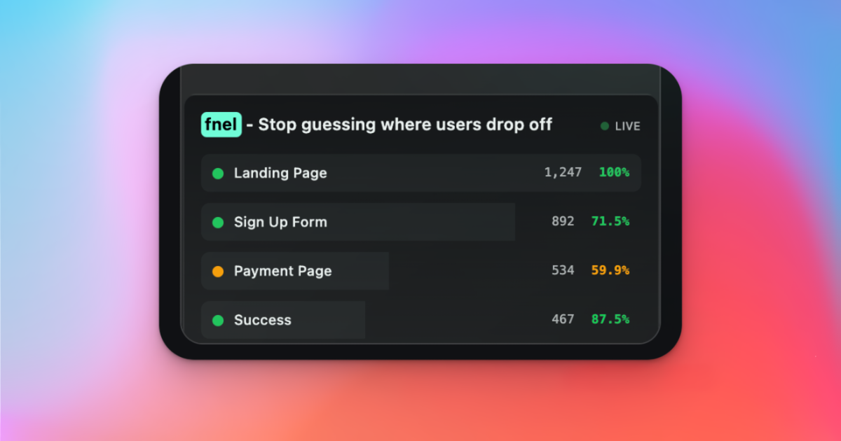 fnel is a simple funnel analytics tool designed for solo founders, indie hackers, and early-stage startups. Unlike traditional analytics platforms that require complex integrations and endless dashboards, fnel focuses on one thing: helping you understand where users drop off in your funnel.