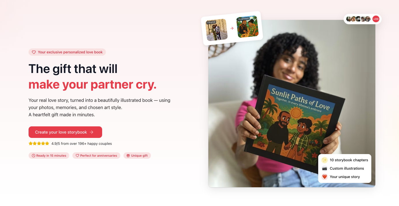 LoveTales.ai is the modern way to preserve and celebrate love stories. By blending artificial intelligence with artistic illustration, we create fully personalized books based on real relationships. You share the details of your journey, and we craft a heartfelt narrative with stunning visuals that feel straight out of a fairytale. Each book is one-of-a-kind, making it a meaningful gift for couples who value memories over material things. With LoveTales.ai, your love story becomes a piece of art