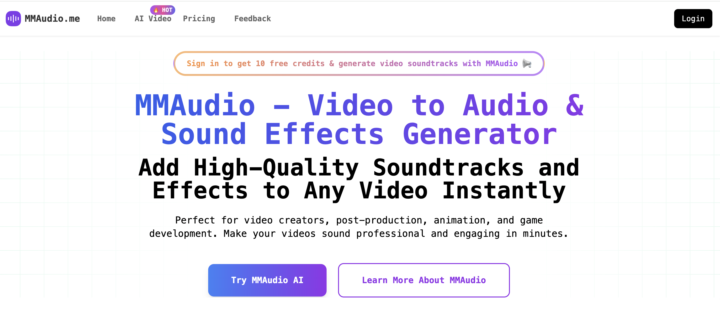 Add professional audio to your videos with MMAudio - the advanced AI that generates high-fidelity, context-aware soundtracks and sound effects from any video.