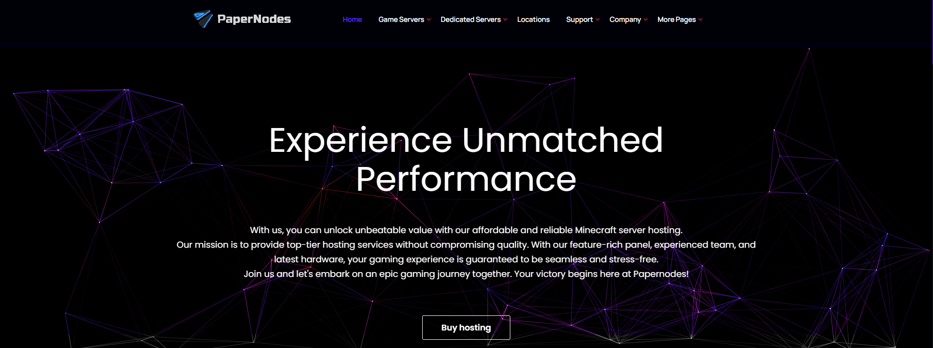 Welcome to PaperNodes! PaperNodes is your premier hosting solution for Minecraft, Mindustry, and more! Established on June 12, 2022, our mission is to provide affordable and dependable Minecraft server hosting services without compromising on quality. Your Go-To Hosting Solution: Whether you're a Minecraft enthusiast or a fan of Mindustry, We got you covered! Our hosting services cater to a wide range of gaming communities, offering reliable solutions for all your hosting needs.