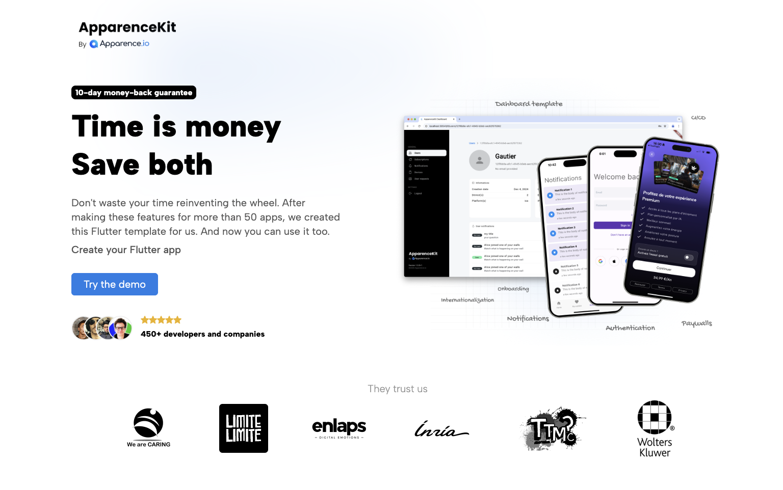 ApparenceKit is the definitive boilerplate solution engineered to dramatically accelerate the development and deployment of profitable mobile applications using Flutter. Designed by experts from a leading Flutter agency after over six years in the field, this powerful kit eliminates the need to "reinvent the wheel," saving developers and startups hundreds of hours of repetitive coding and debugging. Stop Coding Boilerplate, Start Building Features The core value of ApparenceKit is its focus on